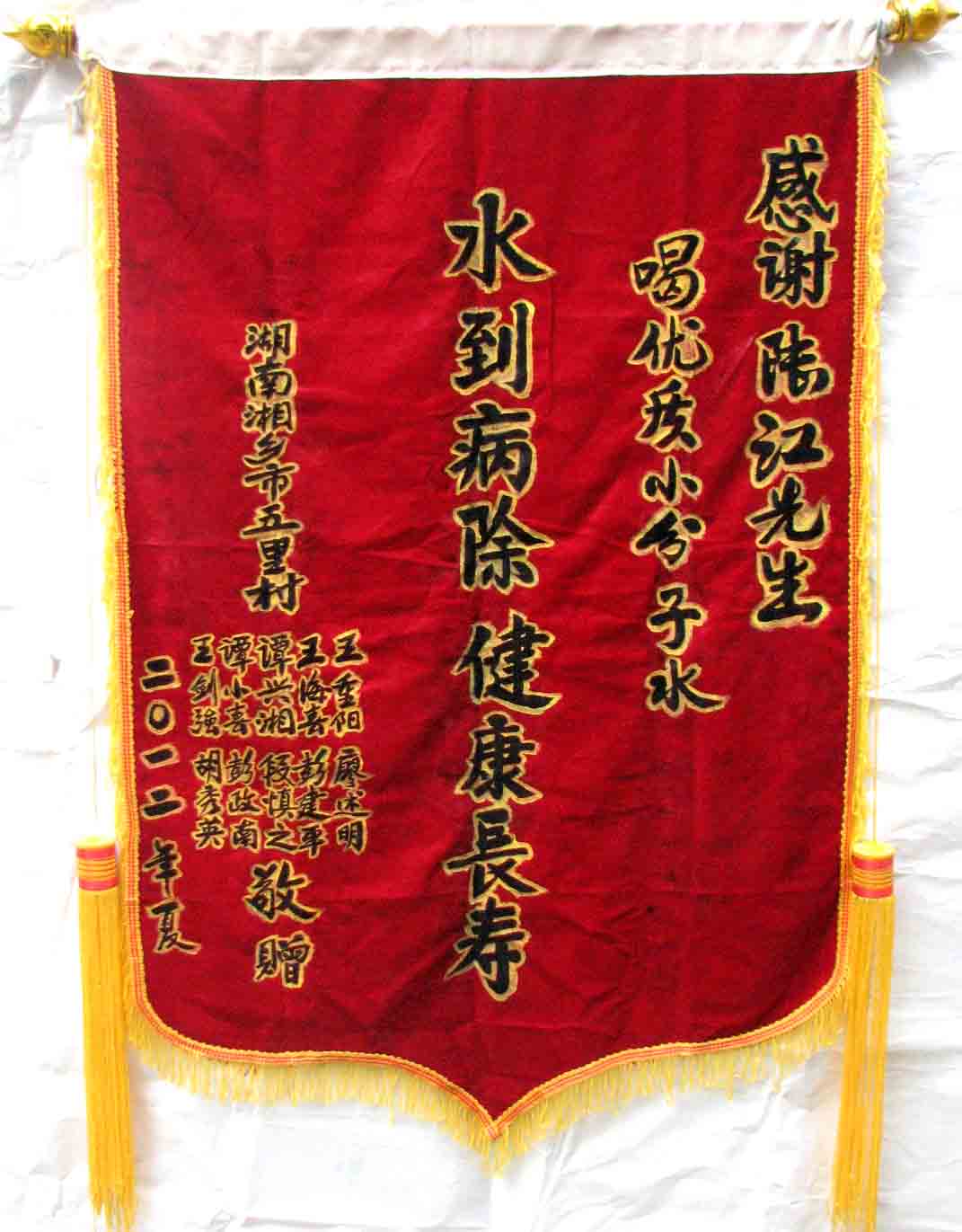 新疆63歲的賀兆生飲用一年,冠心病未愈,他用電話介紹是食堂管理員,問(wèn)他食量多少?說(shuō)吃七八分飽,睡前還吃兩袋牛奶,陸 江說(shuō)我在論文和書中多次批判“吃七八分飽”,關(guān)照患者務(wù)必用“己饑方食”控制主食肉食量,要他把牛奶改在早中餐吃,減少主食肉食量,建議不吃晩餐,晚上只吃一個(gè)蘋果,再經(jīng)幾個(gè)月補(bǔ)水節(jié)食,治愈了21年的冠心病和肥胖、失眠等病,信中由衷地感激陸 江為再生父母。[13]因?yàn)獒t(yī)生從未過(guò)問(wèn)他的膳食習(xí)慣,只管開(kāi)處方藥或手術(shù),父母也不會(huì)叫他不吃晩飯。